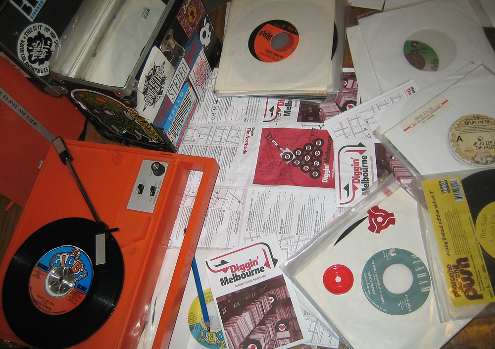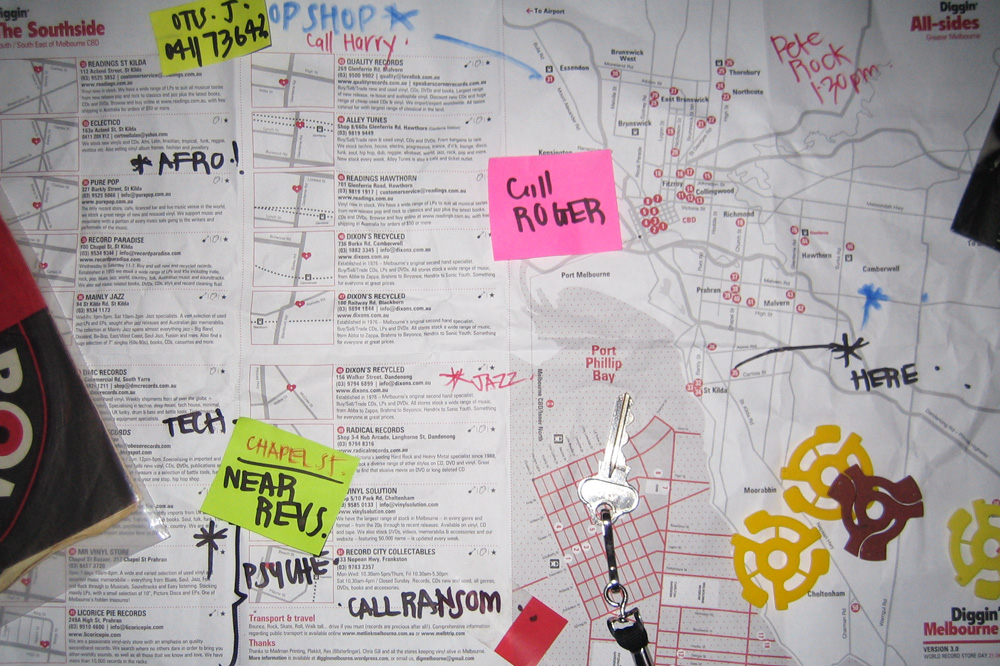 The new 2012 Diggin’ Melbourne Map is bigger and better than our previous editions, and once again features more than 50 listings of Melbourne’s ‘vinyl providores’. A printed version of the map is also available FREE around Melbourne and can be found at record stores, cafes, cinemas, tourism offices and various other dusty locations!